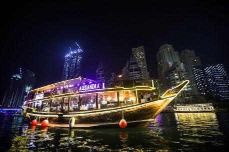 The Alexandra Dhow Cruise in Dubai Marina offers a charming and memorable experience aboard a traditional wooden dhow. Passengers embark on a journey through the picturesque waters of Dubai Marina, surrounded by the stunning skyline and iconic landmarks.