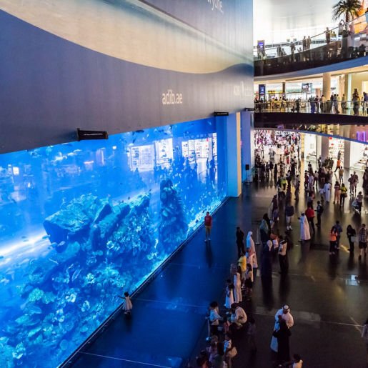 Enter the Dubai Aquarium via the Dubai Mall, Lower Ground Level (LG)