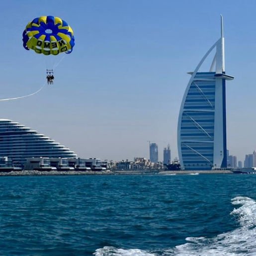 See Dubai's stunning skyline like never before with a thrilling parasailing adventure at Nemo Watersports