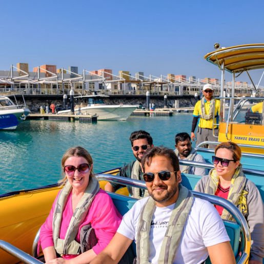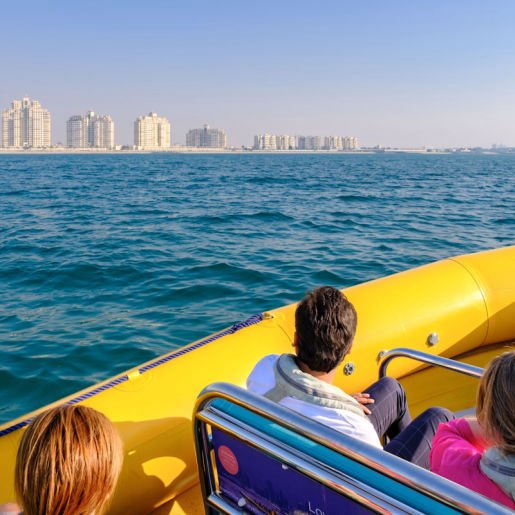 Cruise past the iconic Waldorf Astoria, witness the beautiful coastline and marvel at the man-made Al Marjan Island.