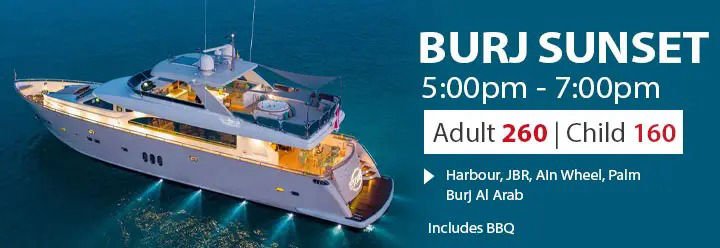 Take your loved one or friends for a VIP experience onboard a 144-foot luxury superyacht! Enjoy a fresh buffet by the chef, a live DJ, and breathtaking views of the Dubai Harbour.