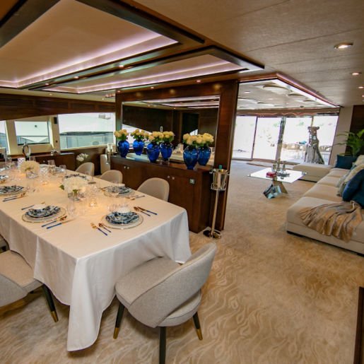 Enjoy a chef-made buffet on a luxury superyacht with a view of Dubai