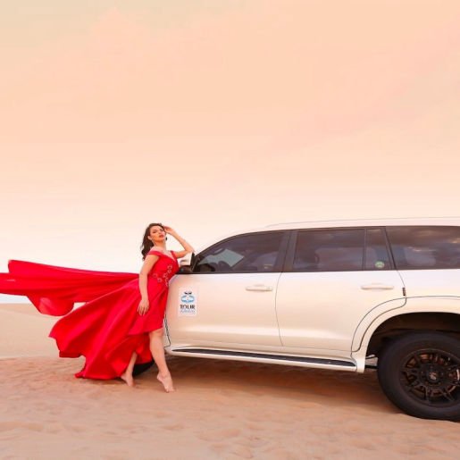 Embark on a regal journey into the heart of the desert with the Royal Desert Fortress Safari! Ride in style in a sleek Land Cruiser, ready to conquer the sandy terrain. Witness the glorious desert sunset, painting the sky with a spectacular array of colors, while the thrill of dune bashing leaves your heart racing.