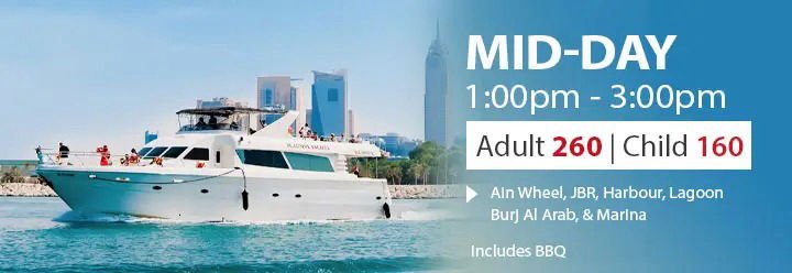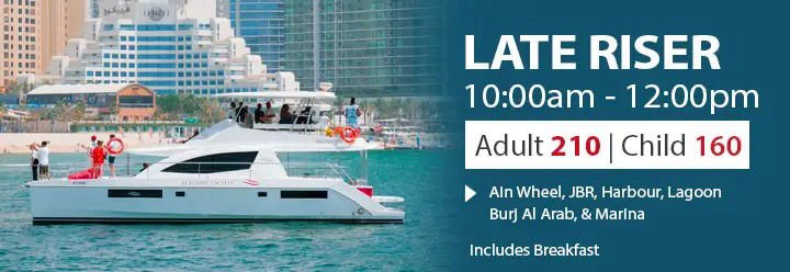 Embark on a deluxe morning, afternoon, or sunset yacht-share adventure in Dubai with light breakfast or BBQ options