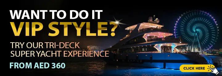 Get panoramic views of Dubai, as you cruise around the harbour, and start the way you mean to go on with a VIP-style red-carpet welcome.