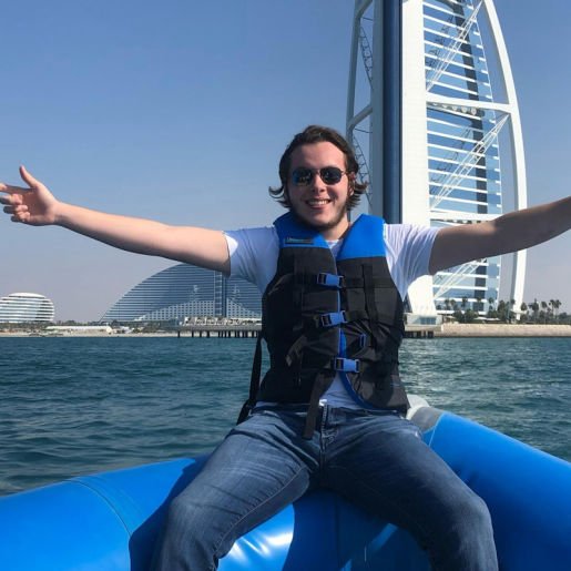 Settle into your seat on the speedboat for 1.5-hours of sightseeing around Dubai, perfectly timed to catch the light just before sunset. The first stop is the Burj Al Arab, the city's famous landmark.